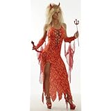 Sexy devils mistress is a 5 piece set that includes a long gown with flames that laces down the front, with a very daring down the leg slit, matching gloves with mesh, pitchfork, horns, and tail. Read more